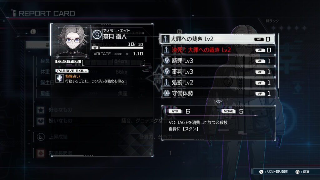 なるほど、「頼れる相棒」。これはもう、最優先で育成すべき重要キャラクターに違いありませんね! では、そんな蒼月くんの育成具合を見てみましょう。