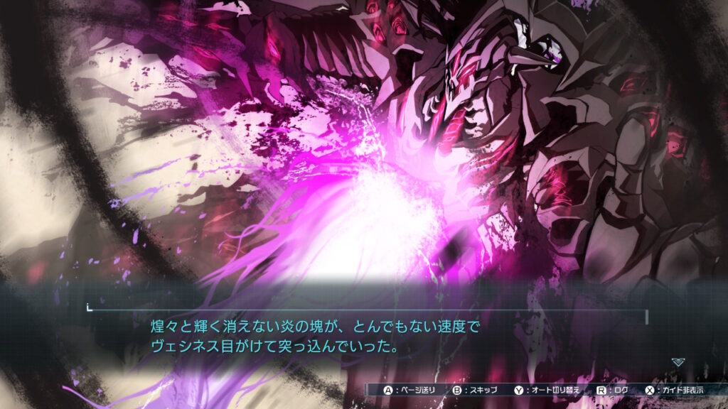 約束通り、消えない炎の少年が助けに来てくれました!なんとかヴェシネスに渾身の一撃をぶちかますも、トドメを刺すところまではいかず、またしても逃げられてしまいます。